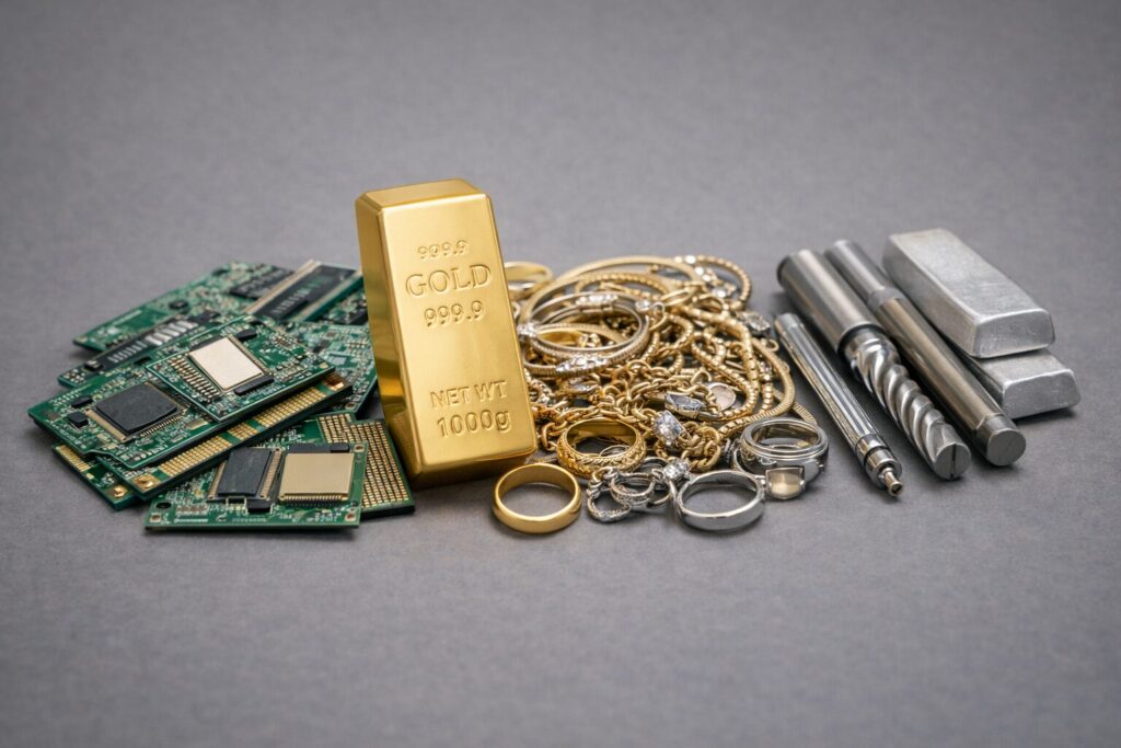 当社は、ジュエリー・廃棄電子基板や使用済み電子部品・めっき廃液や触媒などから貴金属を回収・精製し、再利用可能な形で社会に還元しています。